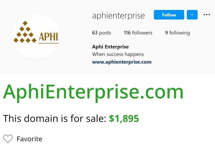 ส่วนเว็บไซต์ของบริษัท เมื่อเข้าไปตรวจสอบก็พบว่า ปัจจุบันเว็บไซต์ดังกล่าวได้ตายไปแล้ว ทำให้กระปุกดอทคอมไม่สามารถเข้าถึงข้อมูลอื่น ๆ ได้อีก หน้าเว็บไซต์มีเพียงประกาศว่า ขายชื่อเว็บ AphiEnterprise.com ในราคา 6.6 หมื่นบาท