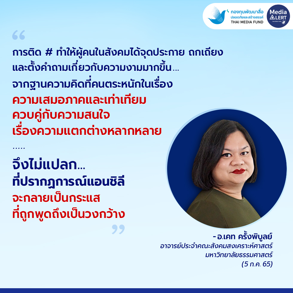 นอกจากนี้ การแสดงออกทางความคิดที่แตกต่างกันต่อปรากฏการณ์แอนชิลี ยังสะท้อนความเข้าใจ "Real Size Beauty" ของคนในสังคม ซึ่งอาจารย์เคทได้วิเคราะห์ว่า สังคมมีการขยายกรอบความคิดเรื่องความสวยที่กว้างมากขึ้น แต่ในขณะเดียวกันก็ต้องย้อนกลับมาคิดว่า คนในสังคมมีความเข้าใจสังคมพหุวัฒนธรรมมากน้อยแค่ไหน ที่ผ่านมาสังคมไทยมีความเป็นเอกวัฒนธรรมสูง ในลักษณะความเชื่อแบบภาพแทน (Represent) เช่น ภาพแทนความเป็นหญิง/ชาย ควรเป็นอย่างไร หรืออย่างไรคือความสวย/ความไม่สวย ซึ่งในความเป็นจริง สังคมดำรงไปด้วยคนที่แตกต่างหลากหลาย ทั้งรูปร่าง หน้าตา ศาสนา ชาติพันธุ์ การสร้างการยอมรับความแตกต่างเหล่านี้ เป็นอีกหนึ่งความท้าทายที่สังคมไทยกำลังเผชิญ เพราะเมื่อใดที่ฐานความคิดการเคารพในความหลากหลายไม่เกิดขึ้น ยากที่จะทำให้คนในสังคมเข้าใจ ความไม่เข้าใจนำมาซึ่งการปฏิเสธ การไม่ยอมรับ