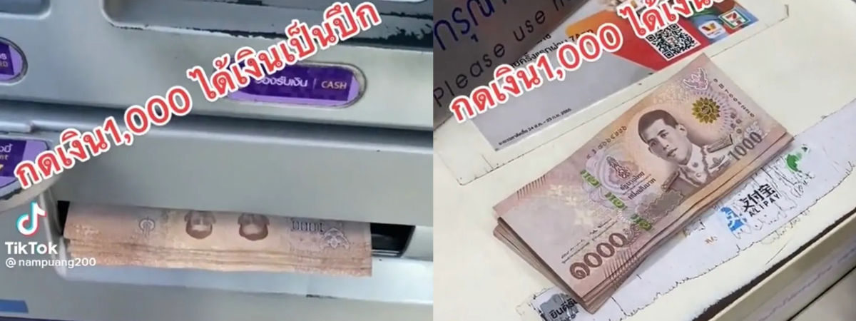 ถึงกับทำอะไรไม่ถูก กดเงินที่ตู้ ATM แค่พันเดียว พอหยิบเงินออกจากตู้ ทำไมได้เป็นปึกแบบนี้