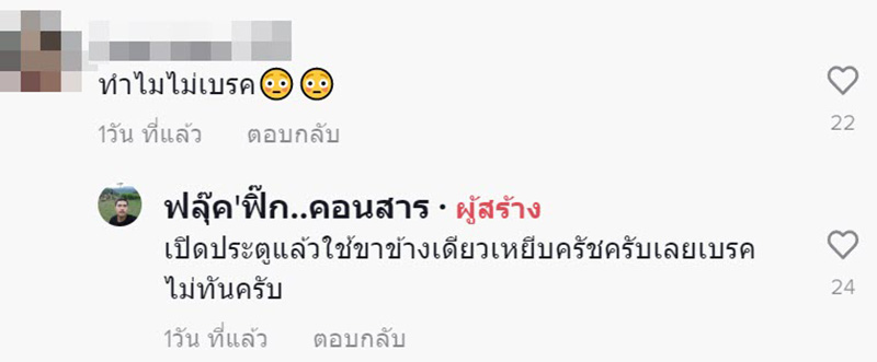 ขณะที่ ข่าวช่อง 3 รายงานว่า จากการสอบถามเจ้าของกระบะและเจ้าของบ้าน เล่าว่า รถในคลิปเป็นรถกระบะเกียร์ธรรมดา ก่อนหน้านั้นคาดว่ารถถูกจอดโดยใส่เกียร์ไว้ ไม่ได้ปลดเป็นเกียร์ว่าง พอก่อนเกิดเหตุ รุ่นน้องได้วอร์มเครื่องยนต์ก่อนออกไปทำงาน แต่พอเปิดประตูรถ และเอาขาข้างหนึ่งเหยียบคลัชต์ มือก็บิดกุญแจสตาร์ต ปรากฏว่ารถได้พุ่งชนกำแพงบ้านพังทั้งแถบตามที่เห็น จึงอยากจะเอามาลงเพื่อเป็นอุทาหรณ์ว่า จอดรถทุกครั้งให้ใส่เกียร์ P เท่านั้น ไม่งั้นจะเป็นแบบนี้ได้