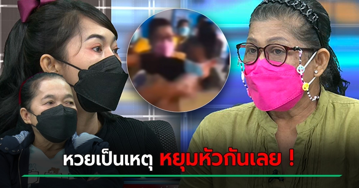 ![แม่ค้าหวยหยุมหัวกันหน้าตู้ แย่งคิวกดสลาก แม่ค้าหวยหยุมหัวกันหน้าตู้ แย่งคิวกดสลาก]()