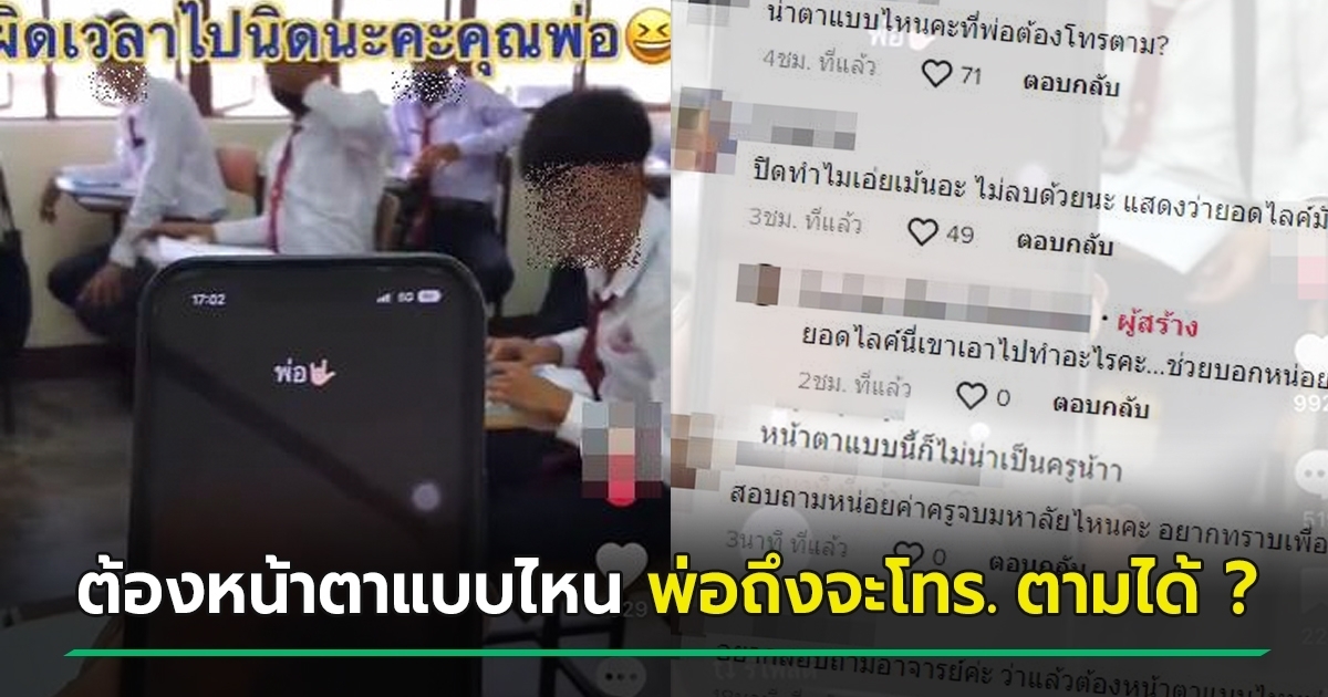 ต่อมาครูคนดังกล่าวก็ถ่ายคลิปหน้าจอการโทร. เข้า แล้วแพนกล้องไปทั่วห้องถามว่ามือถือเครื่องนี้เป็นของใคร หลังจากนั้นก็มีนักศึกษาชายคนหนึ่งยกมือขึ้นบอกว่าเป็นของตัวเอง ครูกลับตอบไปว่า "หน้าตาแบบนี้พ่อไม่น่าโทร. ตามนะ" พร้อมลงแคปชั่นว่า "พ่อน่ารัก ผิดเวลานิดหน่อยโทร. ตามแล้ว 555"