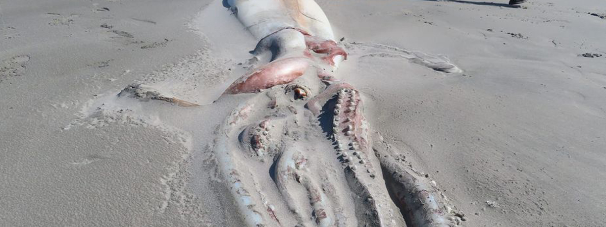 เฟซบุ๊ก Anton Donaldson ซึ่งเป็นเจ้าของกรุ๊ปทัวร์ NZ Trout Adventures ในนิวซีแลนด์ ได้เผยภาพตอนกลุ่มนักท่องเที่ยวเจอซากหมึกยักษ์เกยตื้น บนชายหาดในพื้นที่ Farewell Spit ทางตอนเหนือของเกาะใต้ ซึ่งมีความยาวกว่า 4 เมตร พร้อมหนวดสภาพที่ไม่สมบูรณ์ จริงแล้ว ๆ นี่ไม่ใช่ครั้งแรกที่มีการพบหมึกยักษ์เกยตื้นบนชายหาดใน Farewell Spit เพราะพื้นที่นี้ เคยพบหมึกยักษ์เกยตื้นมาแล้วอย่างน้อย 6 ครั้ง ในรอบ 30 ปี
