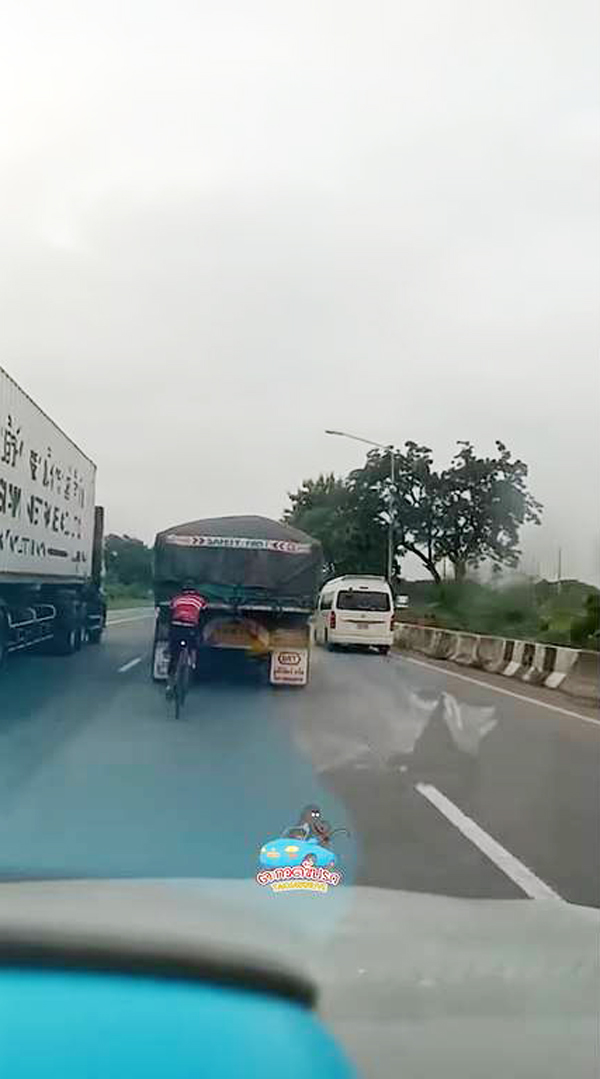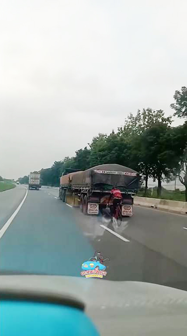 วันที่ 22 กันยายน 2565 เฟซบุ๊ก ตะกวดขับรถ ได้โพสต์คลิปวิดีโอที่เผยให้เห็นคนคนหนึ่งกำลังปั่นจักรยานอยู่ แต่ไม่ใช่ลักษณะการปั่นธรรมดา แต่เป็นการขี่จี้ท้ายรถพ่วงในระยะประชิดสุด ๆ ที่ใครเห็นเป็นอันต้องหวาดเสียว