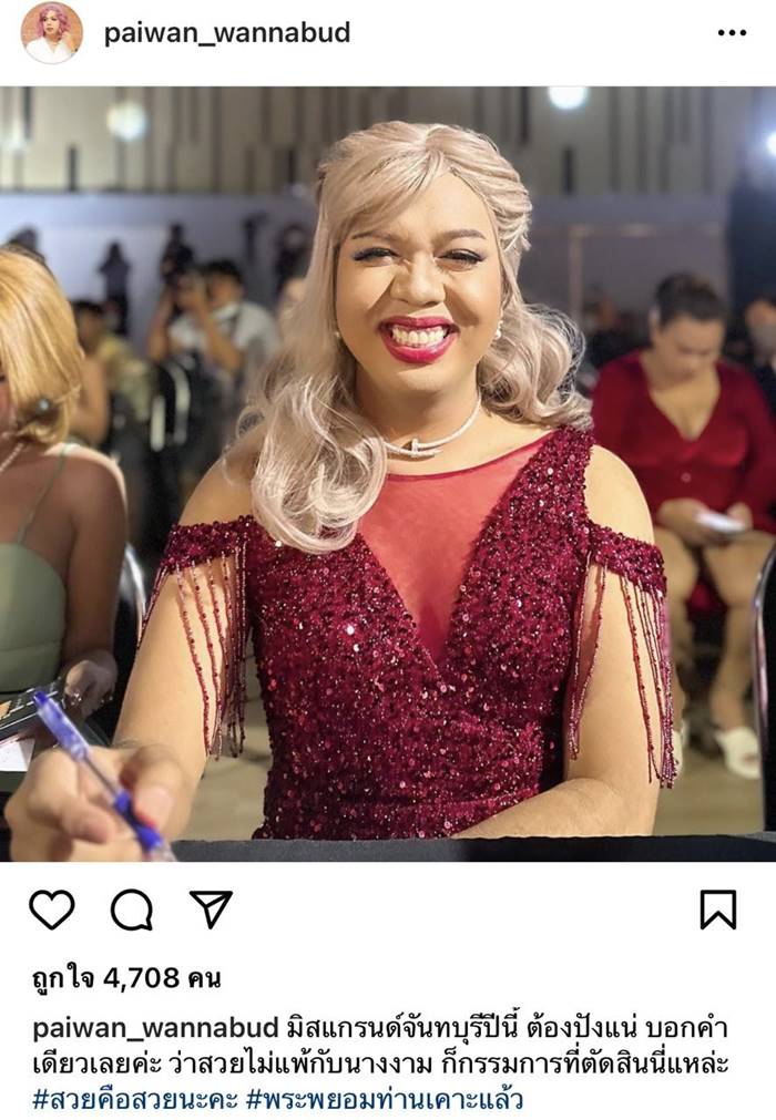 "มิสแกรนด์จันทบุรีปีนี้ ต้องปังแน่ บอกคำเดียวเลยค่ะ ว่าสวยไม่แพ้กับนางงาม ก็กรรมการที่ตัดสินนี่แหละ สวยคือสวยนะคะ พระพยอมท่านเคาะแล้ว...อย่าให้เสียชื่อมิสเปรียญ ๙ นะคะ นะคะ นะคะ สวยแบบไม่ต้องมีมง เพราะเคยทรงสบงมาก่อน"