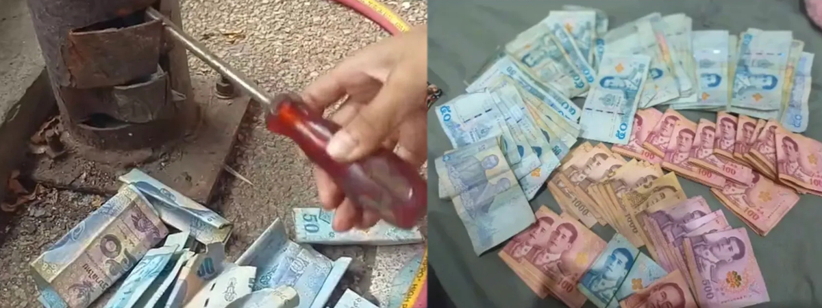 ลูกงัดแบงก์ออกจากเสาบ้าน ซึ่งเป็นกระปุกออมสินของพ่อ พบเงินเกือบแสน มีแบงก์ 50 ยันแบงก์พันเพียบ