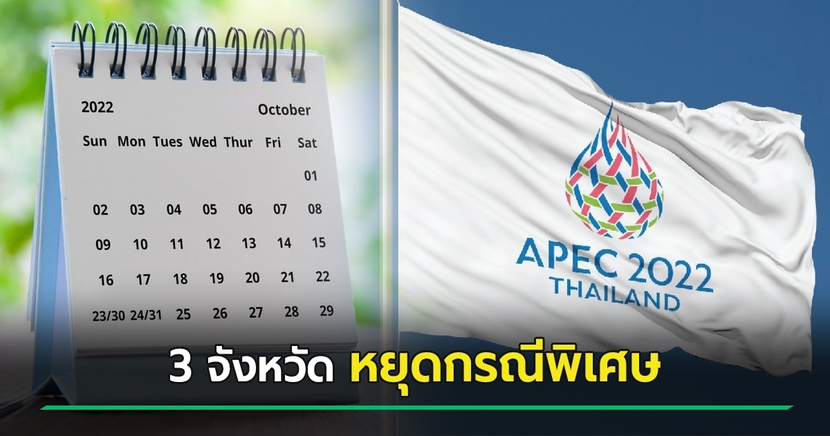 ครม. เพิ่มวันหยุดพิเศษยาว 3 วัน ในช่วงสัปดาห์การประชุมผู้นำเขตเศรษฐกิจเอเปก APEC 2022 ตั้งแต่ 16-18 พฤศจิกายน 2565 เฉพาะในพื้นที่กรุงเทพฯ-ปริมณฑล