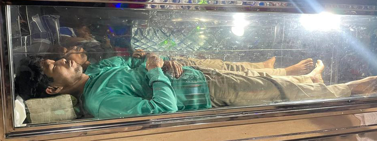 เฟซบุ๊ก วิเชียรบุรีโลงเย็น โลงศพ-โลงเย็น ปราสาท-โต๊ะหมู่ ได้เผยภาพตอนที่เจ้าของร้าน ทดสอบรีวิวโลงศพเย็นแก้ว ด้วยการให้ตัวเองลงไปนอนในนั้น ก่อนที่จะส่งให้ลูกค้าถึงประเทศลาว รีวิวได้สมจริงจนกลายเป็นไวรัลดังบนโลกออนไลน์ แถมชาวเน็ตยังคอมเมนต์แซวเจ้าของร้านอีกด้วย