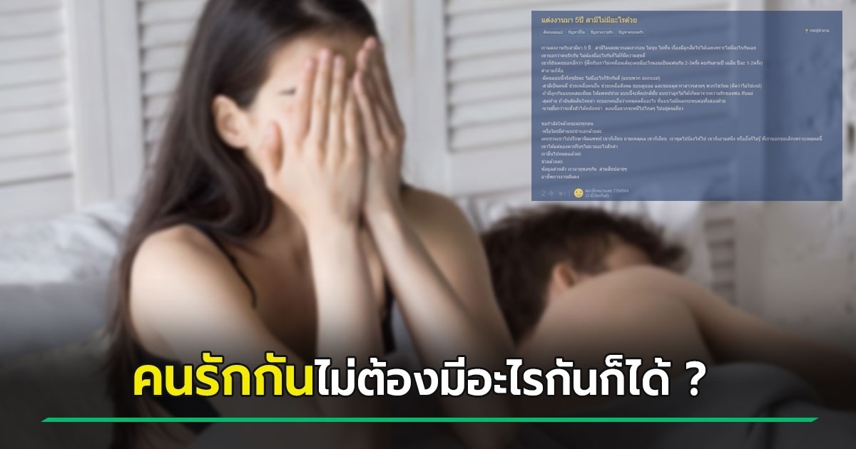 สาวเครียดปัญหาชีวิตคู่ แต่งงานมา 5 ปี สามีไม่มีอะไรด้วย พีคกว่าบอกคนรักกัน ไม่ต้องมีอะไรกันก็ได้ ตั้งแต่คบจนแต่งงานรวม 8 ปี เคยมีอะไรกันแค่ 2-3 ครั้ง