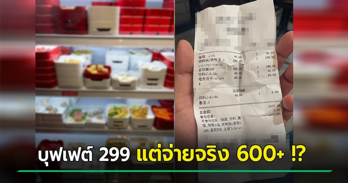 ลูกค้าเดือด รีวิวบุฟเฟต์ 299 บาท แต่จ่ายจริงหัวละ 600+ ช็อกคิดค่าหม้อแยกต่างหาก คนชี้มีป้ายบอกราคาอยู่ เจอสวนกลับร้านให้ข้อมูลไม่เคลียร์