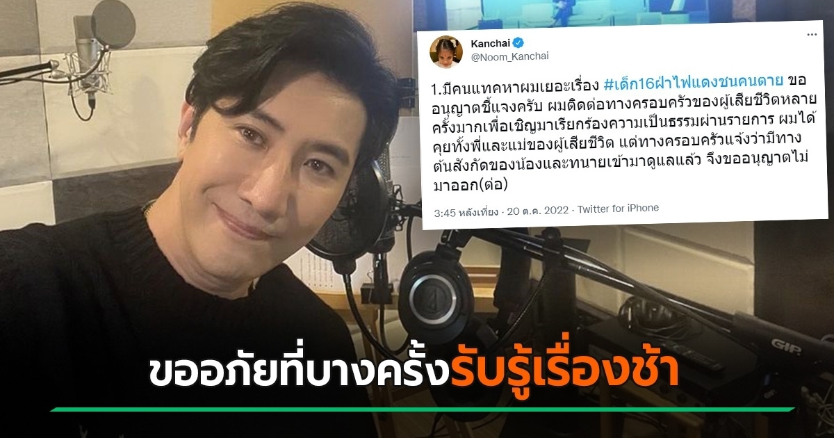 "1. มีคนแท็กหาผมเยอะเรื่อง #เด็ก16ฝ่าไฟแดงชนคนตาย ขออนุญาตชี้แจงครับ ผมติดต่อทางครอบครัวของผู้เสียชีวิตหลายครั้งมากเพื่อเชิญมาเรียกร้องความเป็นธรรมผ่านรายการ ผมได้คุยทั้งพี่และแม่ของผู้เสียชีวิต แต่ทางครอบครัวแจ้งว่ามีทางต้นสังกัดของน้องและทนายเข้ามาดูแลแล้ว จึงขออนุญาตไม่มาออก