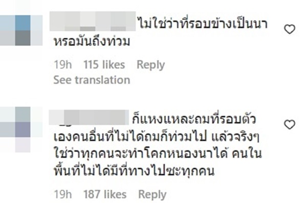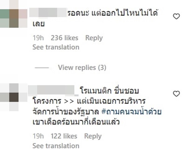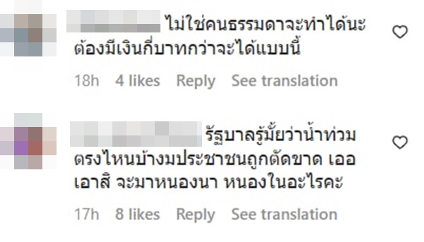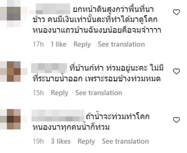 แต่ในขณะเดียวกันก็มีคนมาบอกว่า สภาพของบ้านหลังนี้ตอนนี้ไม่ต่างกับการติดเกาะ โดนล้อมรอบไว้ด้วยน้ำ ออกไปไหนไม่ได้ บ้างก็บอกว่าสิ่งสำคัญก่อนที่จะทำโคกหนองนาโมเดลได้ คือต้องมีที่ดินและต้องมีเงินไปจ้างรถมาขุดดินก่อน และถ้ามีเงินจ้างรถขุดดินและถมดินจนพื้นที่สูงกว่าคนอื่น 2-3 เมตร เช่นกรณีสวนนี้ อย่างไรก็รอดโดยไม่ต้องพึ่งโคกหนองนา บางคนก็บอกว่าที่บ้านก็ทำโคกหนองนาแต่ก็ท่วมเหมือนกัน เพราะไม่มีทางให้ระบายน้ำออก และในความเป็นจริงแล้ว การจัดการน้ำให้มีประสิทธิภาพควรเป็นหน้าที่โดยตรงของรัฐบาล ควรทำให้หน้าร้อนไม่แล้ง หน้าฝนน้ำไม่ท่วม ไม่ใช่ให้ประชาชนดิ้นรนหาทางถมดินให้สูงเพื่อหนีน้ำท่วมกันเอง