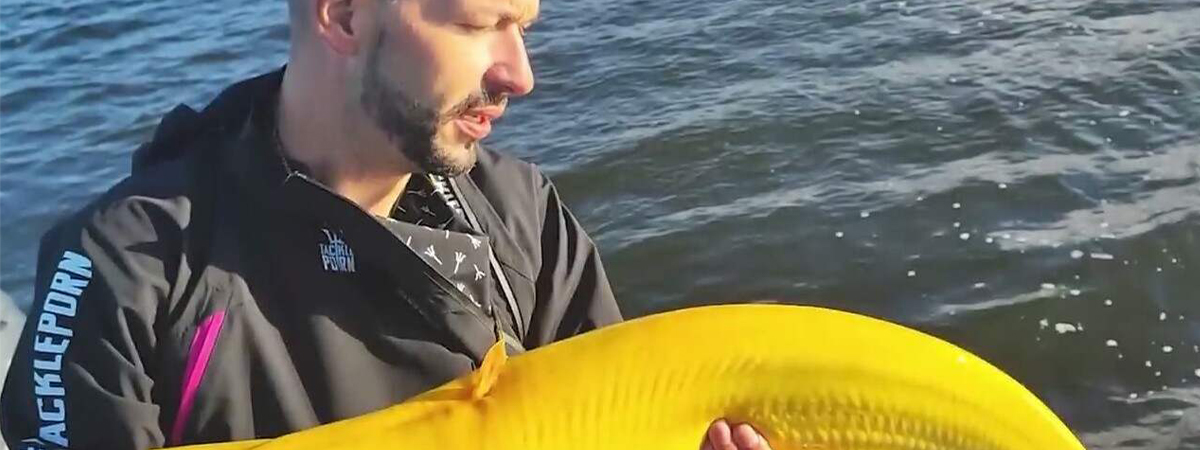 นาทีนักตกปลาพบ ปลาดุกสีทองขนาดใหญ่ ซึ่งปลาที่หายากในเนเธอร์แลนด์ สร้างเสียงฮือฮาสนั่นโซเชียล