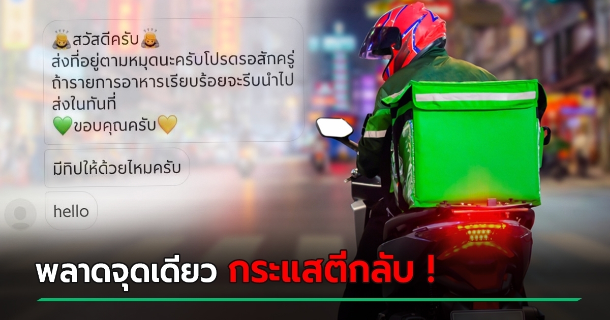 ทันทีที่กดจอง ไรเดอร์ก็ทักมาว่า "มีทิปให้ด้วยไหมครับ