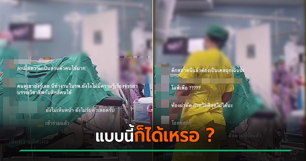 ดราม่า หมอไลฟ์ในห้องผ่าตัด คนทักรัว ๆ เห็นเลือดคนไข้ วอนหยุดไลฟ์ ถามถึงจรรยาบรรณ แบบนี้ละเมิดสิทธิหรือไม่ ขณะที่บางคนมอง เป็นความรู้ อย่าคิดมาก ล่าสุด แพทยสภาทราบเรื่องแล้ว