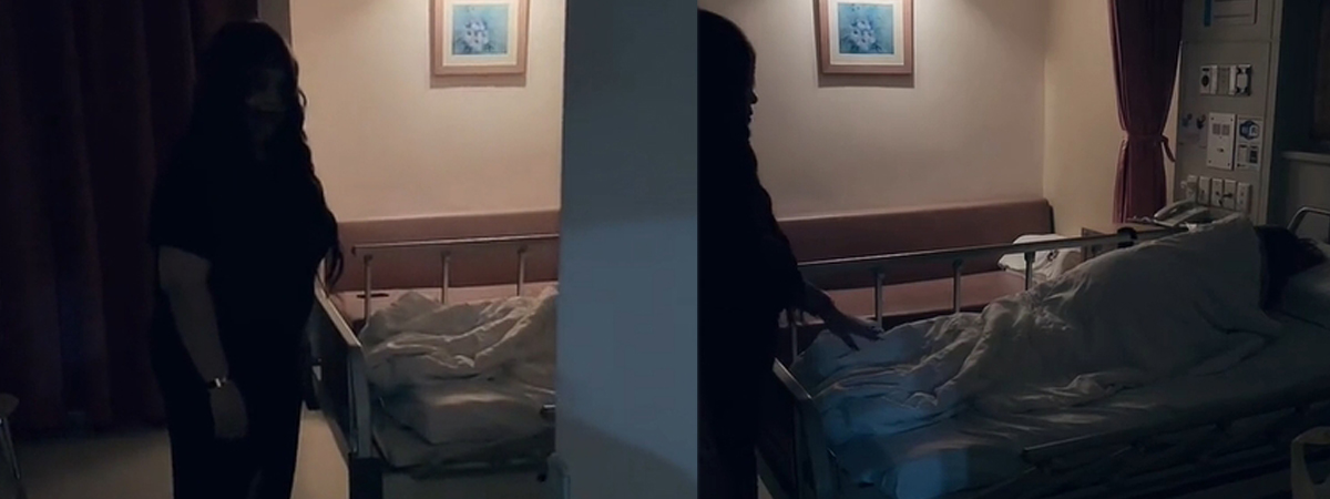 ผู้ใช้ TikTok @pary922 ได้เผยภาพตอนไปเยี่ยมเพื่อนที่โรงพยาบาล บวกกับช่วงนั้นตรงกับวันฮาโลวีนพอดี เลยขอแต่งผีแบบจัดเต็ม ไปโผล่ยืนตรงปลายเตียง ท่ามกลางบรรยากาศอันมืดมัว ตื่นมาเจอแบบนี้ ทำเอาเพื่อนถึงกับกรี๊ดลั่นห้องเลยทีเดียว