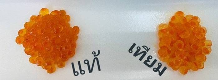 ต่อมาเชฟโฌ โพสต์ถึงวิธีแยกไข่ปลาแซลมอนแท้กับปลอมว่าต่างกันอย่างไร เพราะถ้าดูภายนอกแทบจะแยกไม่ออก จุดสังเกตคือ ของเทียมจะเม็ดใหญ่กว่า และตัวไข่แดงจะสีแยกชั้นอย่างชัดเจน แต่รสชาติแทบจะเหมือนกัน