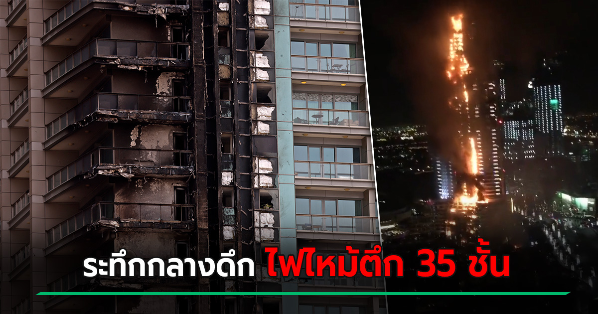 ไฟไหม้ตึกสูงระฟ้ากลางดูไบ ไฟลุกท่วมตึก 35 ชั้น จนถึงยอดตึก เร่งดับไฟระทึกกลางดึก ยังไม่มีรายงานผู้บาดเจ็บ