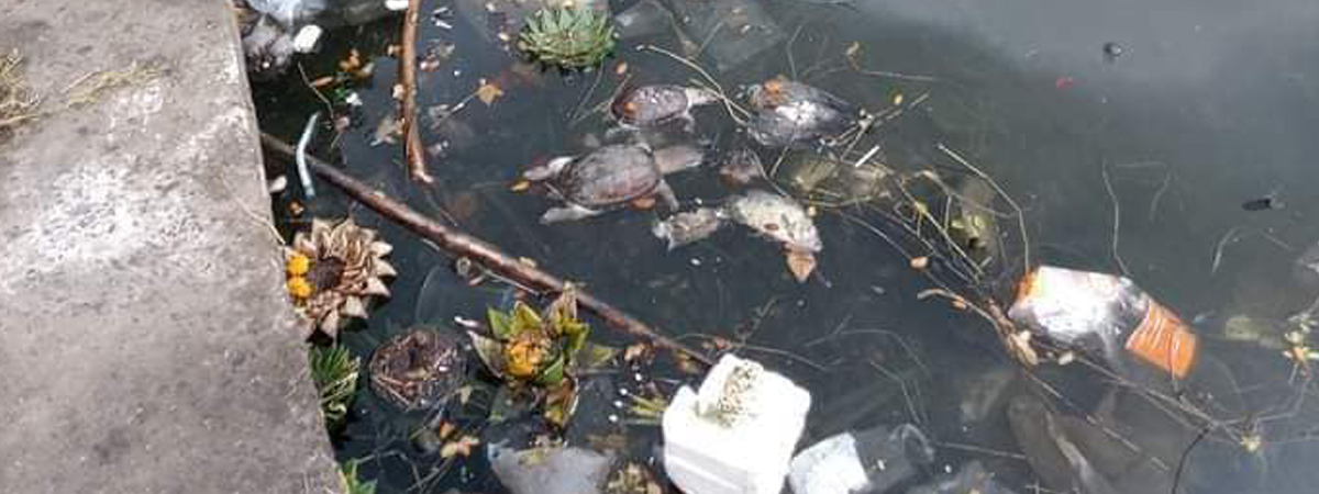 พิษวันลอยกระทง พบซากเต่าและปลา พร้อมเศษขยะลอยเกลื่อนบ่อน้ำ ชาวเน็ตจวกขอขมาพระแม่คงคา หรือมาสร้างบาปกันแน่