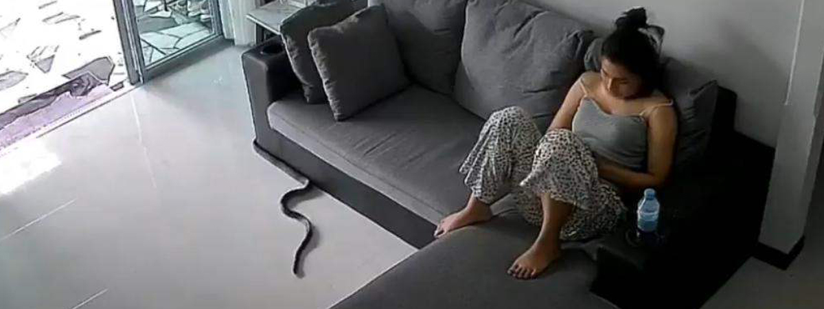 สาวเห็นงูเลื้อยเข้าบ้าน ถึงกับขึ้นไปยืนบนโซฟา ส่งเสียงกรี๊ดลั่นบ้าน ก่อนเหตุการณ์ชวนฮาจะเกิดขึ้น...