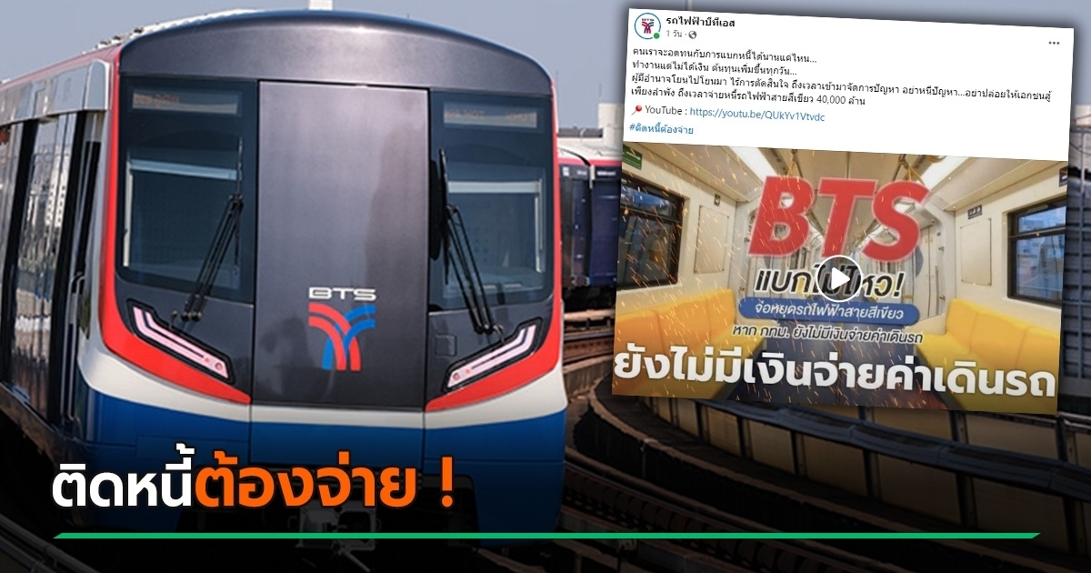 บีทีเอส สุดทน ทำคลิปทวงเงิน กทม. ถึงเวลาจ่ายหนี้รถไฟฟ้าสายสีเขียว 40,000 ล้านบาท ลั่นติดหนี้ต้องจ่าย ด้าน กทม. ชี้แจงเหตุผลยังไม่ชำระหนี้
