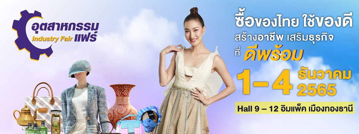 พร้อมขอเชิญชวนพี่น้องประชาชนในร่วมช้อปสนุก ลุ้นสนั่น กันภายในงาน อุตสาหกรรมแฟร์ : ซื้อของไทย ใช้ของดี สร้างอาชีพ เสริมธุรกิจที่ดีพร้อม ระหว่างวันที่ 1-4 ธันวาคม 2565 ณ Exhibition Hall 9-12 อิมแพค เมืองทองธานี เพื่อเป็นกำลังใจให้ผู้ผลิต ผู้ประกอบการ และชุมชน โดยการร่วมอุดหนุนสินค้าในงาน เพื่อช่วยให้เศรษฐกิจของประเทศไทยมีความมั่นคง มั่งคั่ง และยั่งยืนต่อไป โดย กรมส่งเสริมอุตสาหกรรม กระทรวงอุตสาหกรรม