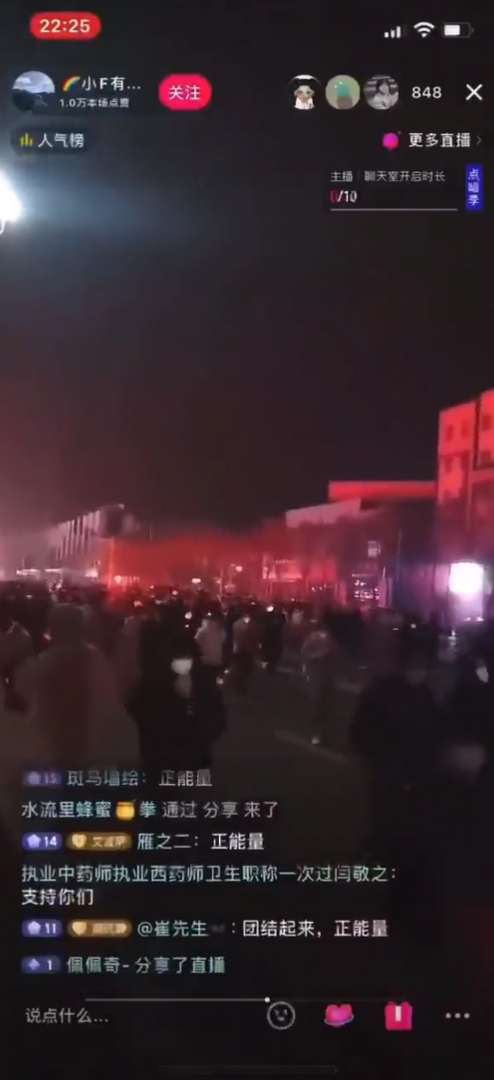 ภาพที่ปรากฏบนโลกออนไลน์พบว่ามีผู้ประท้วงหลายร้อยคน กำลังเผชิญหน้ากับตำรวจปราบปรามจลาจลบนท้องถนน โดยมีคนที่เรียกร้องให้ สีจิ้นผิง ก้าวลงจากอำนาจ