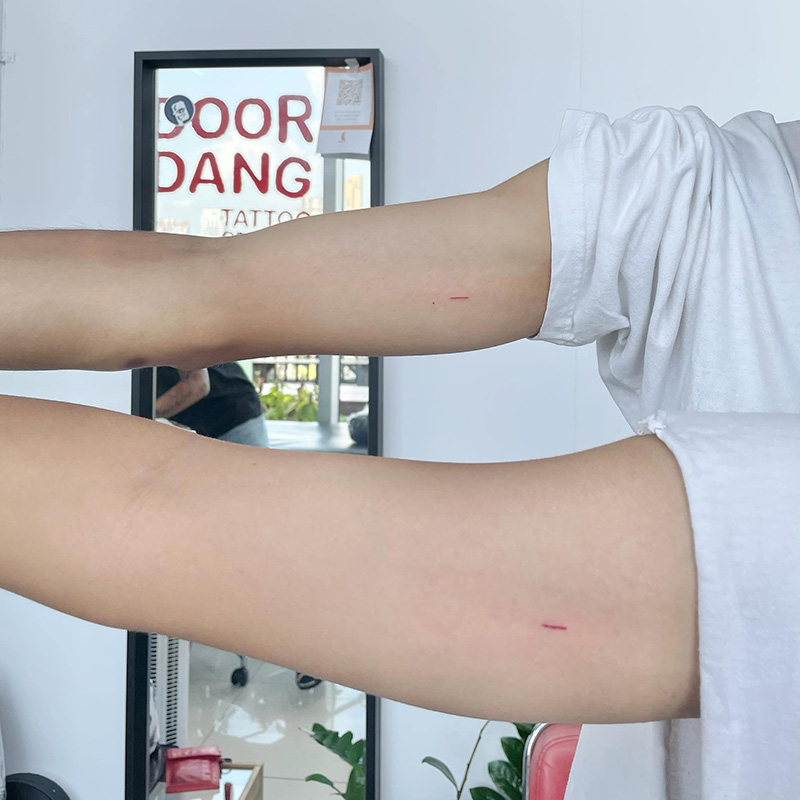 รอยสักคือศิลปะอย่างหนึ่งบนร่างกาย ซึ่งหลายคนอยากจะลองสักสักครั้งในชีวิต แต่ก็แอบกลัวว่าจะเจ็บไหมเพราะเข็มจิ้มเข้าไปที่เนื้อ แต่ยิ่งอยากรู้ก็ต้องลอง โดยล่าสุด (28 พฤศจิกายน 2565) ผู้ใช้เฟซบุ๊ก May Donnayanipon ซึ่งเป็นช่างสัก ร้าน DOOR DANG ได้โพสต์ภาพของลูกค้า 2 คน ที่เข้ามาเพื่อสักเส้นตรงคนละ 1 เส้น