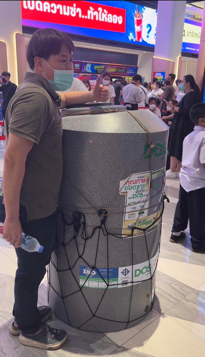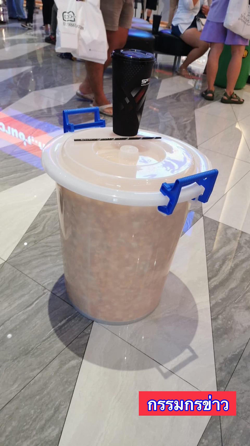 โดยมีทั้ง กล่องลัง, ลังพลาสติก, ถังน้ำแข็ง, สระว่ายน้ำเด็ก, ถุงไซซ์บิ๊กเบิ้ม, แม้แต่ถึงขยะก็ยังมี แต่ที่พีคที่สุดและใหญ่จนต้องร้องโอ้โห ก็คือหนุ่มคนหนึ่ง เอาแทงค์น้ำขนาดใหญ่ 500 ลิตร มาใส่ พร้อมกับเปิดเผยว่า ตนเองเป็นพนักงานบริษัท เพื่อน ๆ ให้เอาแทงค์น้ำนี้มาใส่ป๊อปคอร์น จะนำไปกินระหว่างรวมตัวกันเชียร์ฟุตบอลโลก 2022 กับกลุ่มเพื่อนพนักงานอีก 20 คน นั่นเอง