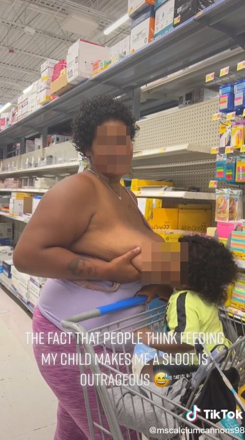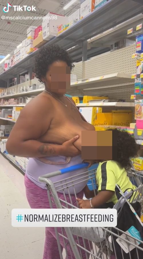 วันที่ 1 ธันวาคม 2565 เว็บไซต์เดลี่สตาร์ของอังกฤษ เผยเรื่องราวประเด็นดราม่าที่ถูกวิพากษ์วิจารณ์บนโซเชียลมีเดีย กรณีคุณแม่รายหนึ่ง ซึ่งใช้ชื่อบัญชี TikTok @mscalciumcannons98 มีผู้ติดตามราว 112,000 ราย ได้แชร์คลิปวิดีโอที่น่าตกตะลึง เผยให้เห็นช่วงเวลาขณะที่เธอกำลังเลือกซื้อของอยู่ในซูเปอร์มาร์เกต นำลูกชายนั่งในรถเข็น ก่อนที่จะถกเสื้อลง และควักเต้าออกมาให้ลูกดูด เธอแสดงความพอใจหันมายิ้มให้กล้อง