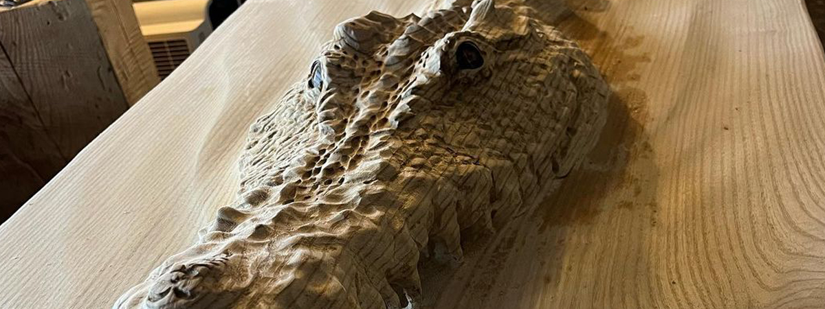 ส่องงานงานแกะสลักไม้แบบสามมิติ สมจริงราวกับจระเข้มีชีวิตอยู่บนโต๊ะจริง ๆ
