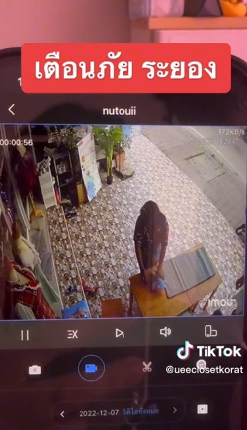 วันที่ 9 ธันวาคม 2565 TikTok @ueeclosetkorat เจ้าของร้านขายเสื้อผ้าแห่งหนึ่งใน จ.ระยอง ได้เผยนาทีระทึกใจ เมื่อเธอขายเสื้อผ้าที่หน้าร้าน และเอาหุ่นวางเอาไว้ ซึ่งจะมีคนมาขโมยเสื้อผ้าไป แต่ไม่ได้ขโมยแบบธรรมดา ขโมยแบบถอดเสื้อผ้ากันข้างหน้าเลยทีเดียว