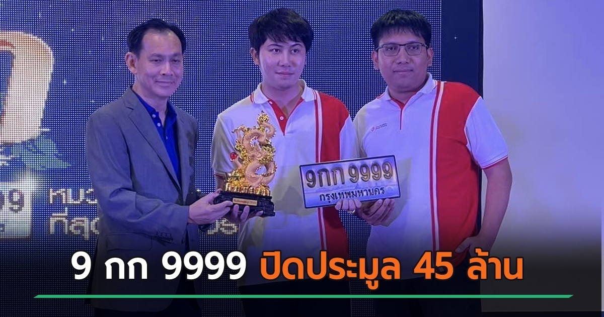 เปิดประมูลหมายเลขทะเบียนรถ 9 กก 9999 แข่งขันกันสุดเดือด จบการประมูลที่ราคา 45,090,000 บาท ทุบสถิติใหม่แพงที่สุดในประวัติศาสตร์
