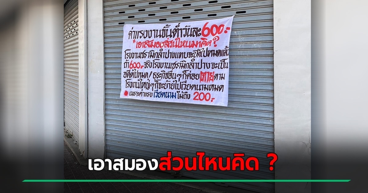 ล่าสุด วันที่ 12 ธันวาคม 2565 ผู้ใช้เฟซบุ๊กรายหนึ่ง มีการโพสต์ป้ายที่ติดหน้าตึกแถวแห่งหนึ่ง จ.ลำปาง มีการติดป้ายค้านค่าแรง 600 บาทว่า "เอาสมองส่วนไหนมาคิด โรงงานเซรามิกลำปางแทบจะปิดไปหมดแล้ว ถ้า 600 จริง โรงงานเซรามิกลำปางก็จะเป็นอดีตไปหมด ธุรกิจอื่น ๆ ก็ค่อยตายตาม โรงงานใหญ่ ๆ ก็จะย้ายหนีไปเวียดนามหมด เพราะค่าแรงเวียดนามไม่ถึง 200 บาท"