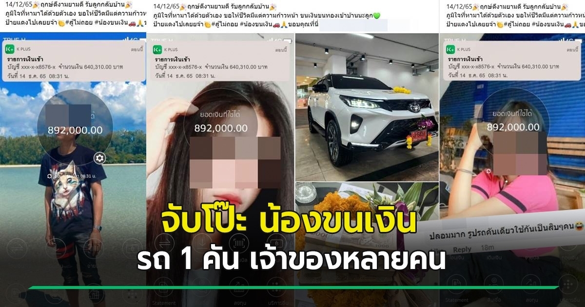 จับโป๊ะ น้องขนเงิน คนแห่ตัดต่อรูปตัวเองเข้ากับรถกระบะ เงินกว่า 8 แสนบาทที่เข้าบัญชี ดูออกทันทีว่าไม่ใช่เรื่องจริง ถึงกระนั้นก็ยังมีคนเชื่อ แถมมาเป็นแพตเทิร์นเดียวกัน รอดสายตาตำรวจไปได้อย่างไร