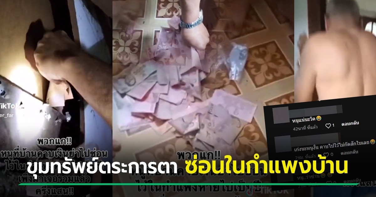 เผยคลิปทุบกำแพงบ้าน โป๊ะหนักมาก เจอขุมทรัพย์ที่ซ่อนเอาไว้ เงินกำออกมาเป็นฟ่อน ๆ คาดเป็นเจ้าหนูตัวดีหลอกเอาเงินคน ด้านคอมเมนต์งง จะโทษหนูหรือโทษปู่ดีนะ !