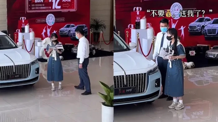 เมื่อวันที่ 16 ธันวาคม 2565 เว็บไซต์ SaoStar เผยว่า เมื่อไม่นานมานี้มีเหตุการณ์แปลกชวนยิ้มเกิดขึ้นที่เมืองหนิงเซีย ประเทศจีน หญิงสาวรายหนึ่งระบุชื่อว่า เตี่ยวเล่อ ได้เดินทางไปที่ร้านตัวแทนจำหน่ายรถยนต์ใกล้บ้าน เพื่อหาซื้อรถยนต์ส่วนตัว มีพนักงานเข้ามาแนะนำข้อมูลเกี่ยวกับรถยนต์ จนเธอเลือกรุ่นที่เธอสนใจได้ในที่สุด