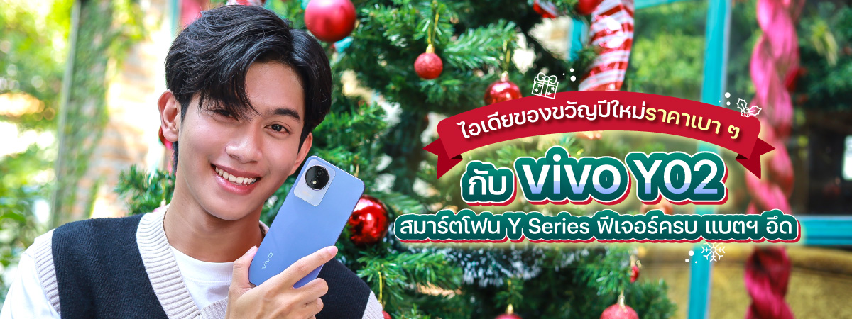 ปีใหม่นี้มีของขวัญหรือยัง ? ขอแนะนำ vivo Y02 สมาร์ตโฟนราคาสุดคุ้ม ฟีเจอร์ครบแบตฯ อึด 5000mAh จอใหญ่ 6.51 นิ้ว พร้อมดีไซน์ทันสมัย นี่แหละไอเดียของขวัญปีใหม่คูล ๆ ที่คนรับต้องเลิฟเลย