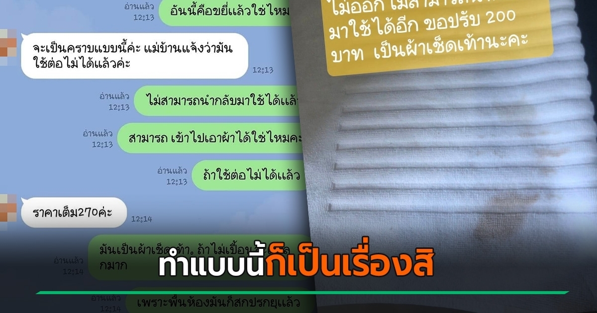 สาวพักโรงแรม เจอค่าปรับผ้าเช็ดเท้าเลอะ ซักไม่ออก โดนไป 200 บาท พอกลับมาซักเอง ขาวจั๊วะ งานนี้ต้องมีบวกกันสักหน่อย