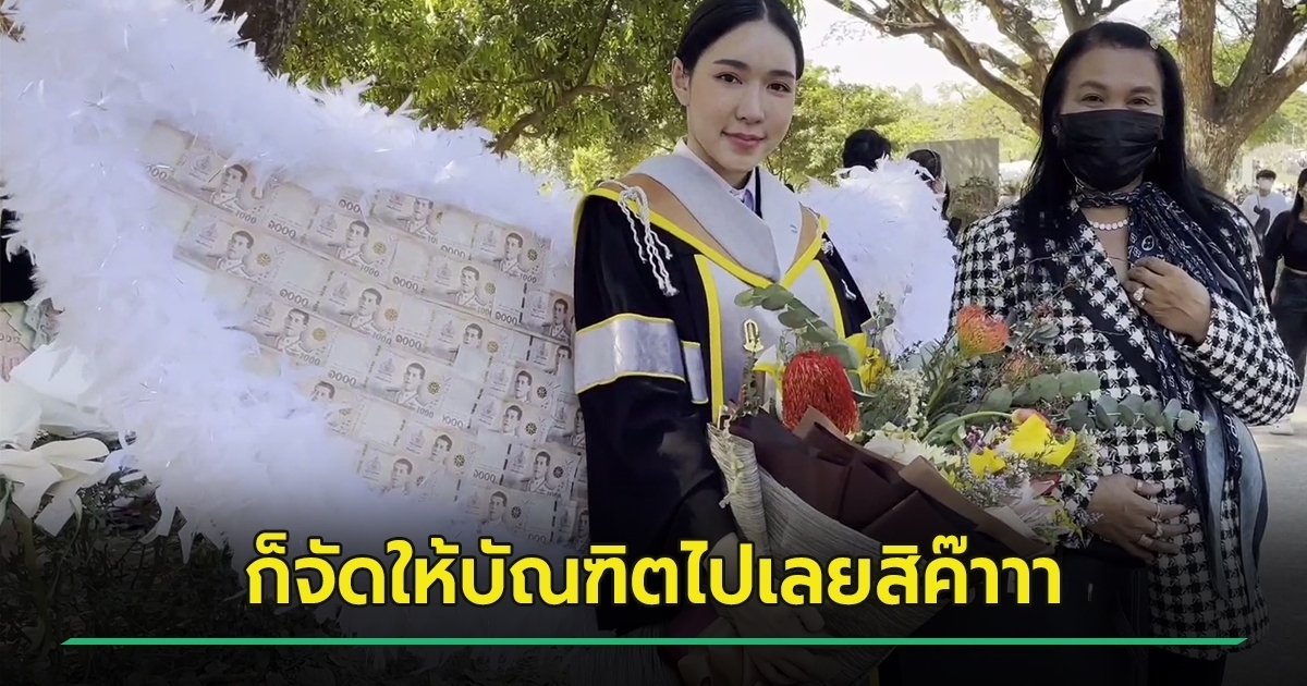 คุณแม่ศุภชาดา กล่าวว่า ตนเตรียมมอบเงิน 2 แสนบาทให้น้องเฟิร์น ลูกสาว ซึ่งจบจากวิทยาลัยการเมืองการปกครอง มหาวิทยาลัยมหาสารคาม โดยใช้ไอเดียการติดปีกนางฟ้า มีทีมงานใช้ลวดเย็บติดกระดาษคอยช่วยติด เพื่อแสดงความยินดีในครั้งนี้ และเป็นทุนให้ลูกสาวนำไปประกอบอาชีพ