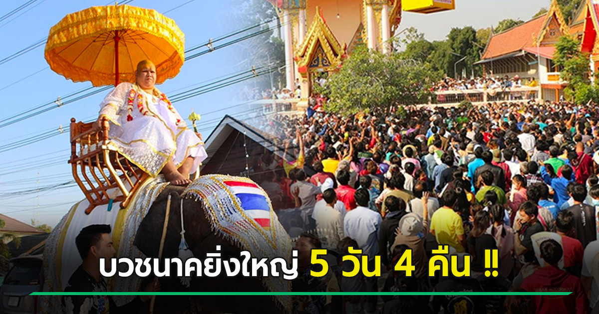 ฮือฮา งานบวชนาคลูก-หลาน นายก อบต.ท่าชุมพล 5 วัน 4 คืน อลังการพานาคขี่ช้างแห่ แถมของรางวัลเครื่องใช้ไฟฟ้า 150 รายการ พร้อมขึ้นเครนโปรยทานกว่า 2 แสนบาท ชาวบ้านร่วมงานแน่นจนวัดแทบแตก