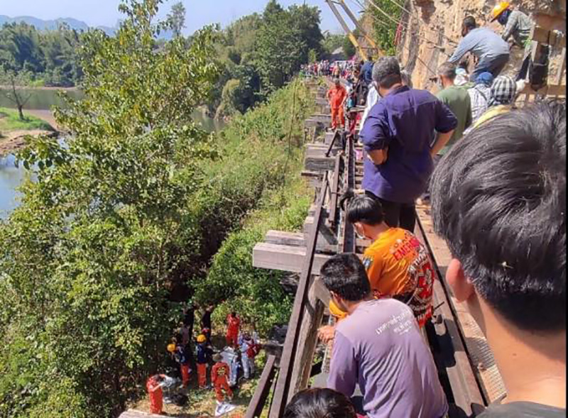 นักท่องเที่ยวชาวนิวซีแลนด์ พยายามถ่ายรูปเซลฟี่ตรงบันไดขึ้น-ลงทางรถไฟ ก่อนเสียหลักพลัดตกรถไฟสายมรณะ บริเวณถ้ำกระแซ ร่างกระแทกพื้นสูงกว่า 10 เมตร คอหักเสียชีวิต