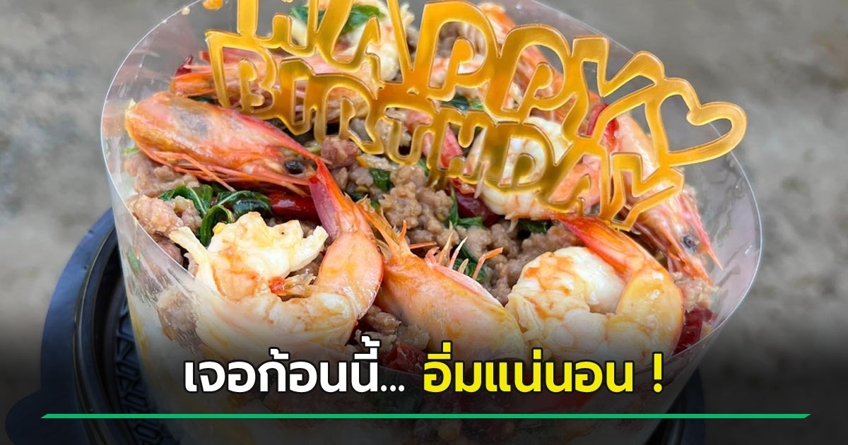 แม่ค้าโชว์ภาพเด็ด ลูกค้าสั่งเค้กวันเกิด แต่ไม่อยากได้เค้กช็อกโกแลตหรือวนิลา เลยจัดให้แบบไม่เหมือนใคร เป็นเค้กผัดกะเพราหมูสับใส่กุ้ง รับรองอิ่มแน่ !