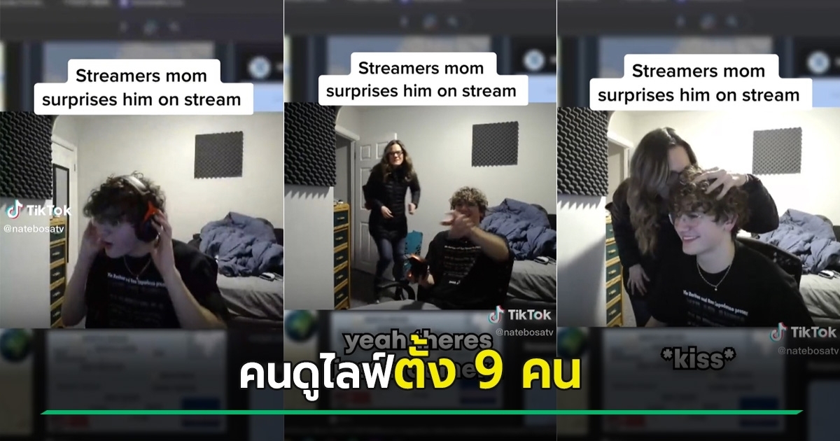 หนุ่มผู้ใช้บัญชี TikTok @natebosatv ได้แชร์คลิปวิดีโอช่วงเวลาขณะที่เขากำลังไลฟ์สตรีมออนไลน์อยู่ภายในห้อง ระหว่างนั้นมีผู้เข้าชม 9 ราย เขาจึงเรียกแม่ที่อยู่ด้านนอกให้เขามาทักทาย เมื่อคุณแม่เข้ามาก็แสดงการตอบรับอย่างดีใจ บอกว่าลูกชายของเธอเจ๋งมาก และเธอก็เป็นแม่ของเขา