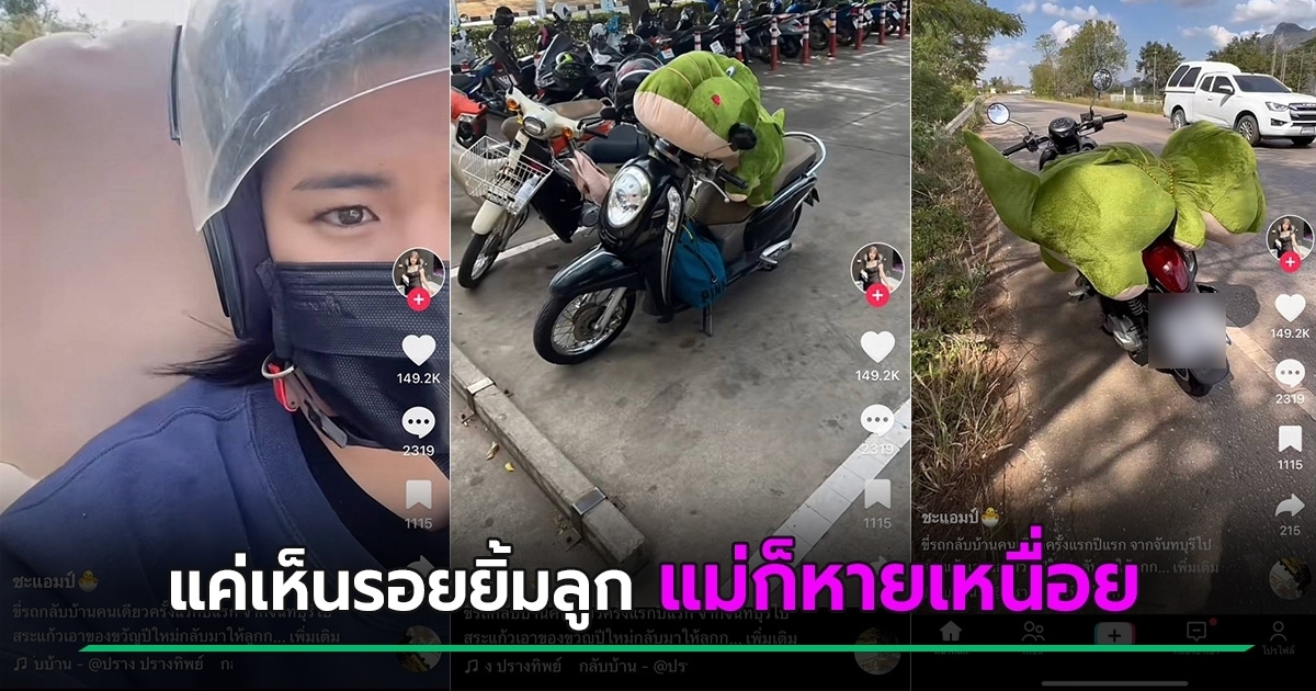 โมเมนต์สุดอบอุ่น แม่ขี่รถจักรยานยนต์ข้ามจังหวัดจากจันทบุรี - สระแก้ว 205 กิโลเมตร หอบตุ๊กตาตัวยักษ์ไปให้ลูกในวันปีใหม่ แค่เห็นรอยยิ้มแม่ก็หายเหนื่อย