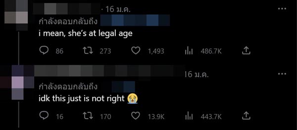 แม้ต่อมาเจ้าของ TikTok จะปิดคอมเมนต์คลิปดังกล่าว แต่ประเด็นนี้ได้ถูกแชร์ต่อในโลกโซเชียลเป็นภาษาอังกฤษ ซึ่งชาวต่างชาติจำนวนไม่น้อยก็รู้สึกว่าภาพแบบนี้ไม่ได้ทำให้รู้สึกอินหรือมองว่าเป็นเรื่องที่น่ารัก ขณะที่บางรายแชร์ประสบการณ์เคยมีแฟนอายุเยอะกว่ากันมาก ๆ ซึ่งพบว่าเป็นรสนิยมที่อีกฝ่ายรับรู้ว่าจากอายุของแฟนนั้นก้ำกึ่งที่จะผิดกฎหมายแต่ก็ชื่นชอบในเรื่องนี้ เป็นต้น