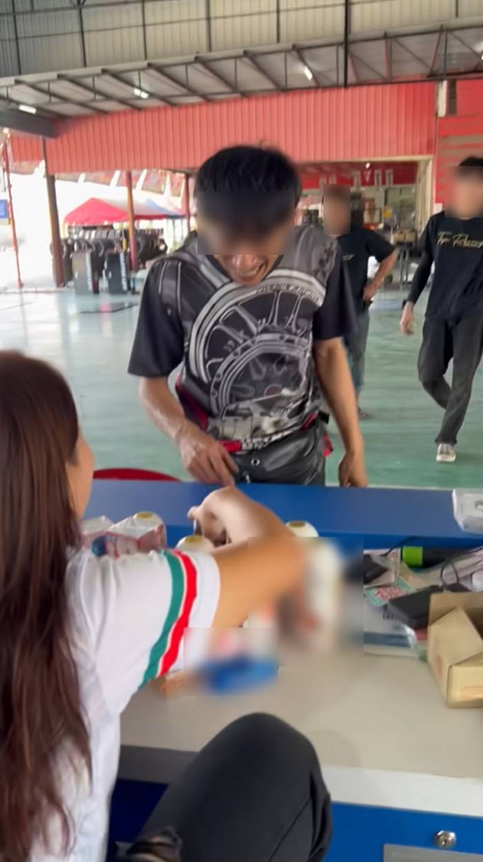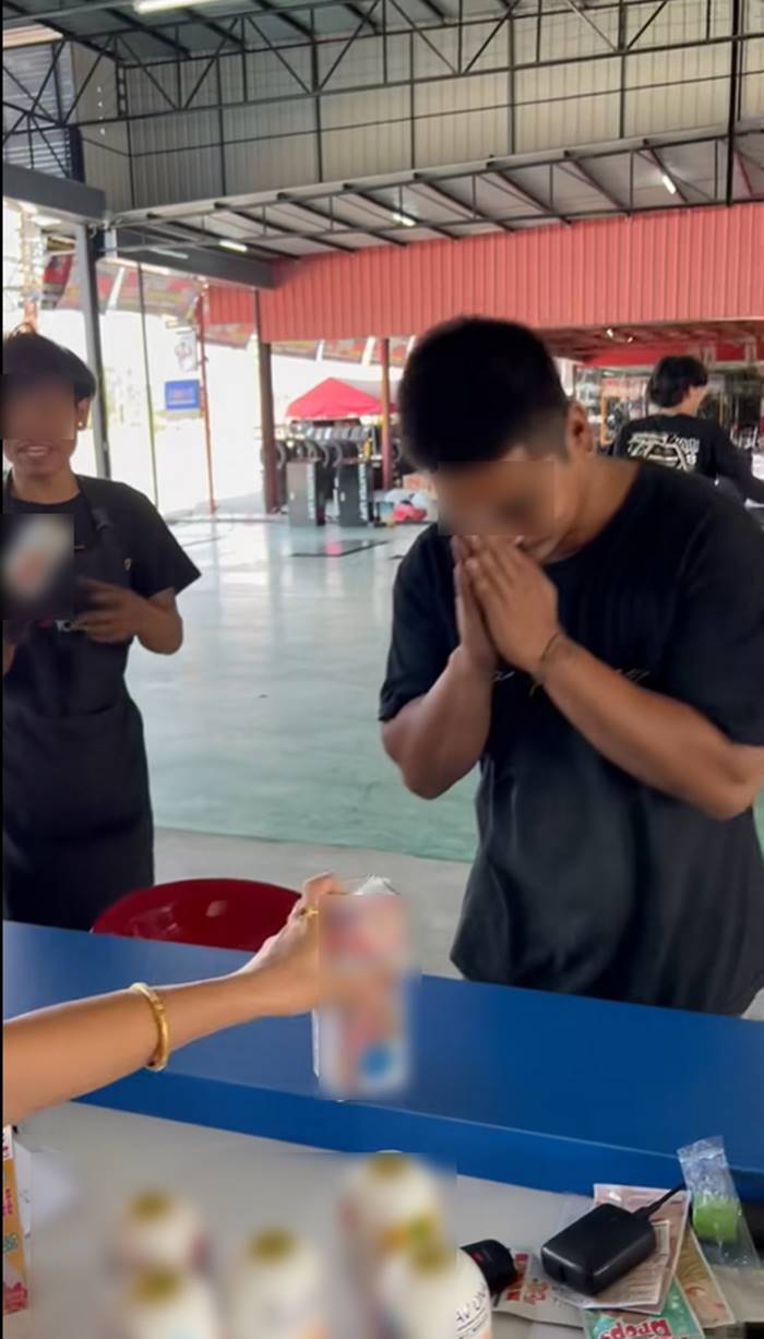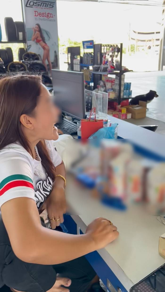 ในขณะที่เจ๊เจ้าของร้านบอกลูกน้องว่า ไม่ต้องอาย