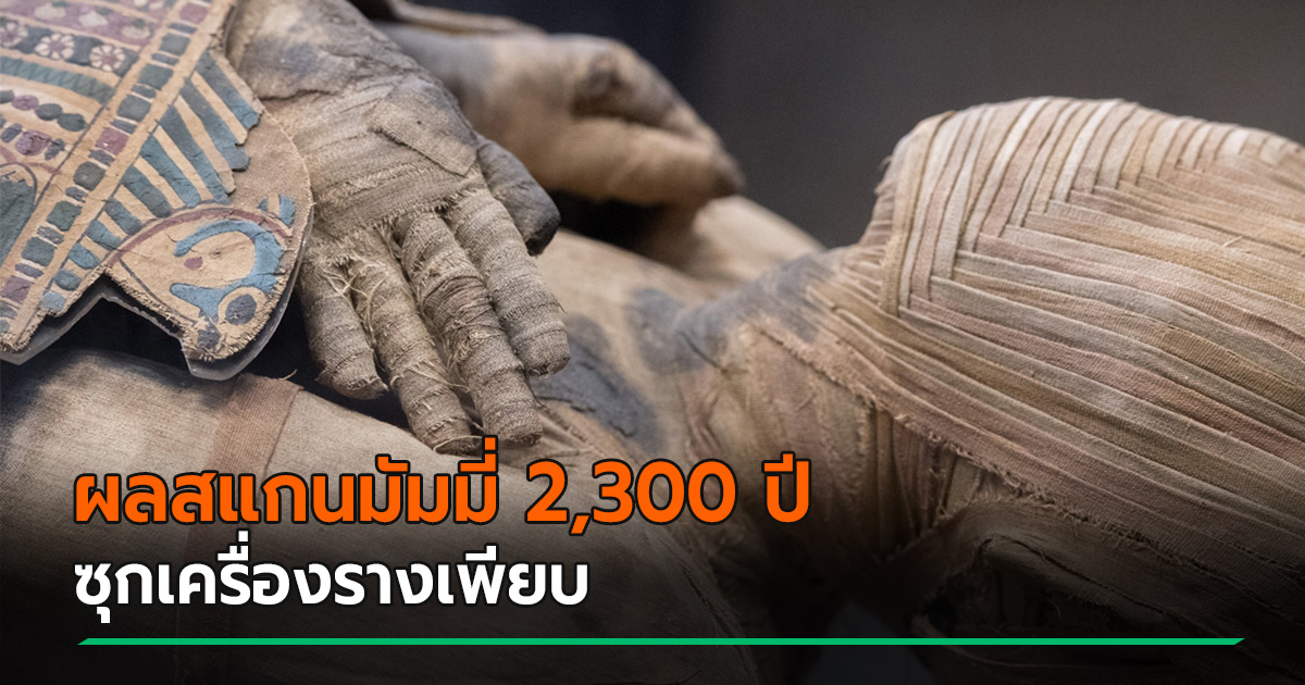 นักวิทยาศาสตร์อียิปต์ สแกนร่างมัมมี่เด็กหนุ่มทองคำ ค้นพบเครื่องรางล้ำค่า 49 ชิ้น ซุกซ่อนในมัมมี่เด็กหนุ่มทองคำ รวมถึงบริเวณอวัยวะเพศ ชี้เป็นชนชั้นสูง ร่างเก็บรักษาในโลง 2 ชั้น