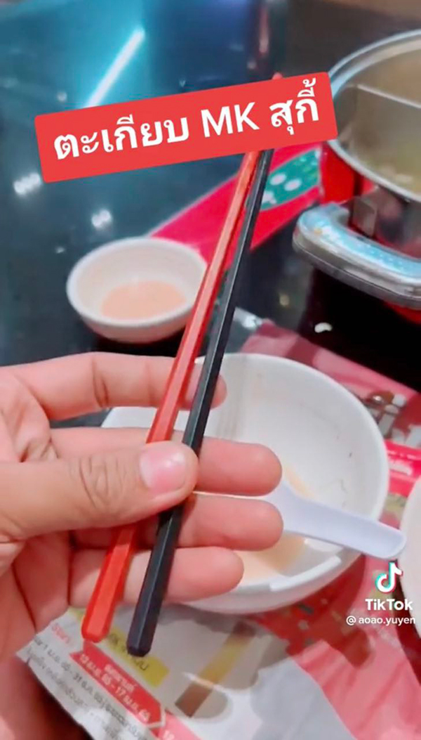 เฉลยแล้ว ทำไมตะเกียบ MK ถึงใช้คนละสี แดง-ดำ หนุ่มอาสาเป็นตัวแทนหมู่บ้าน ถามพนักงานจนได้คำตอบถึงกับร้องอ๋อ แบบนี้นี่เอง