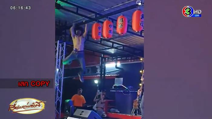 เลยโชว์สกิลห้อยโหนคาน โชว์ความแข็งแรงของกล้ามเนื้อแขน จนคนมองนึกว่าเสก